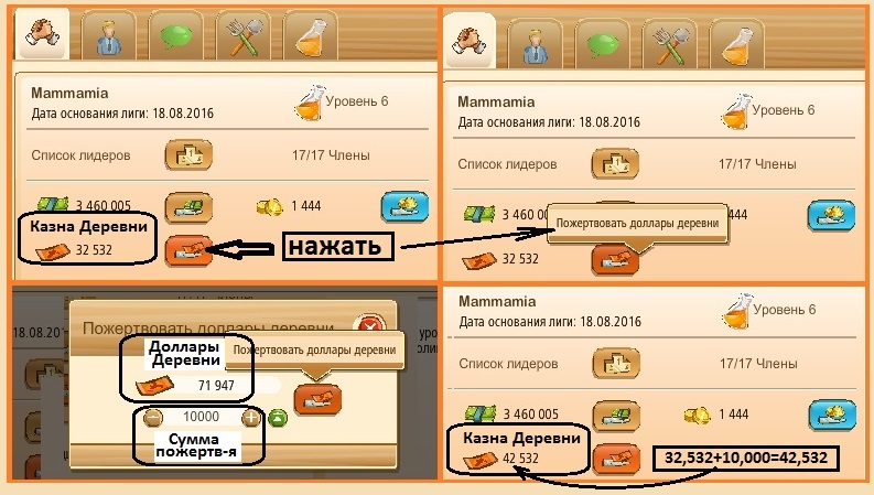 Как внести пожертвование в Казну Деревни лиги.