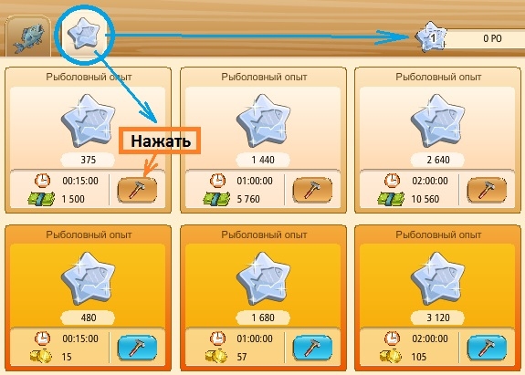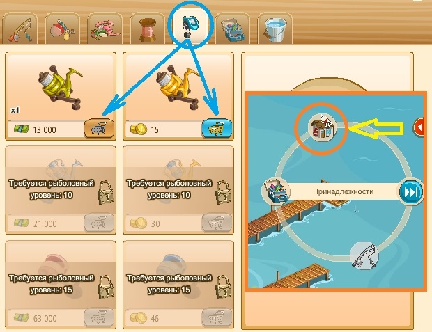 1. Заходим в принадлежности и покупаем наживку.