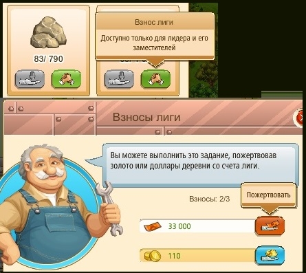 Лидер и представители лиги могут закрыть недостающие материалы долларами из Казны Деревни или золотом из Казны лиги.