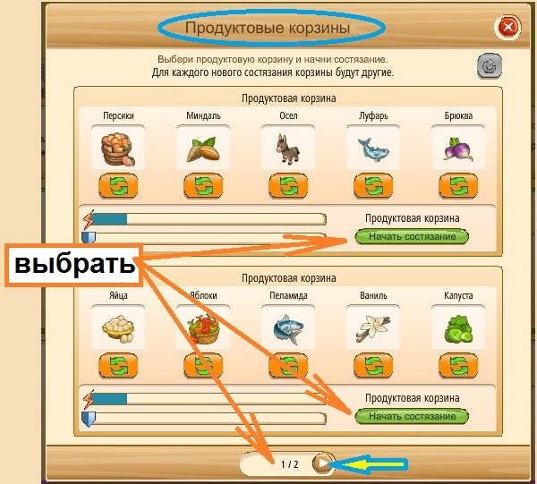 3. На панели Соревнований нажать - Выбрать корзину