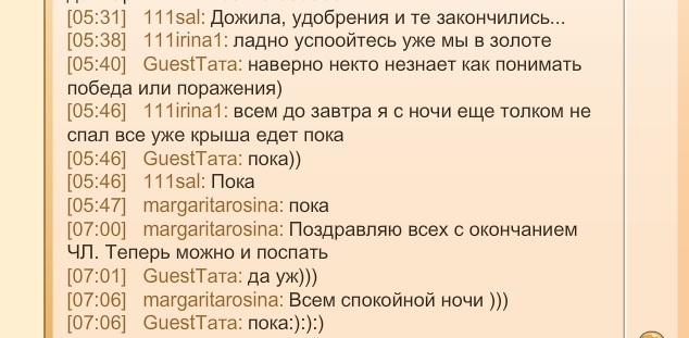 Чемпионаты лиг – это отдельная песня, но мы не пропустили ни один чемпионат, участвовали во всех. Да, было очень трудно, не все получалось, нас обижали, делали пакости, но были и такие кто нас поддерживал и относился очень доброжелательно, за что им огромное спасибо! Лично мне пришлось как-то столкнуться с пакостью от игрока одной очень известной и высокоуровневой лиги. У меня на тот момент был 86 уровень, а у игрока 197. Попали в одну миссию по цветам (рандом, что поделаешь). Через некоторое время прилетает мне порча на поле от этого игрока. На вопрос: «Зачем такое делать?», получаю ответ: «Добряки кончились, ничего личного». Аргумент железный, ничего не скажешь. Самое интересное, что лига, в которой находится этот игрок, олицетворяет себя честной и порядной лигой, в которой такие методы игры не приветствуются. И если какому-нибудь игроку этой лиги прилетает что-то подобное во время чемпионата, то в ветке этой лиги на форуме начинается крик с выкладыванием скринов, нелестных высказываний в адрес посмевшего такое сделать и т.д. А другой игрок из другой известной и высокоуровневой лиги, прислал письмо с добрыми словами поддержи и пожеланием победы. Две стороны одной медали…