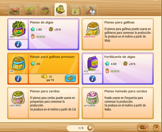 At the following print screen I had my warehouse overflowed (and of course the system let me sell the feeds before produce more):
