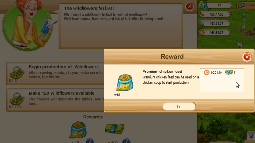 Time shown on Chicken feed reward (Wildflowers Festival task #1)