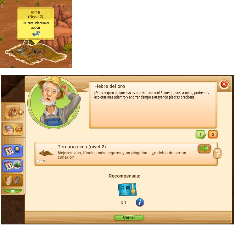 The second task of the gold mine request to upgrade the mine to the level 2 and the reward is a mining license for gold: