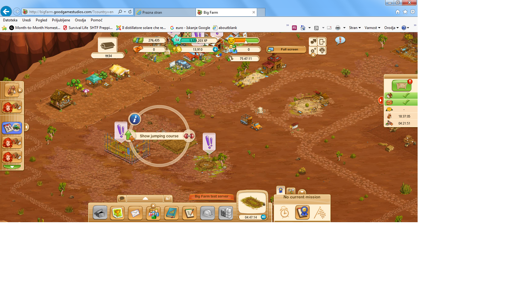 After clicking the upgrade button on the Jumping arena, Cash & Gold was displayed, but not the GOLDEN HORSESHOES or REGULAR HORSESHOES needed for horse play.