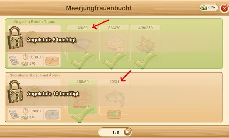 In the restaurant i opened the 1st dish but it says that i have to catch the fish first. I have already done that, i should have a few hundred in store.
