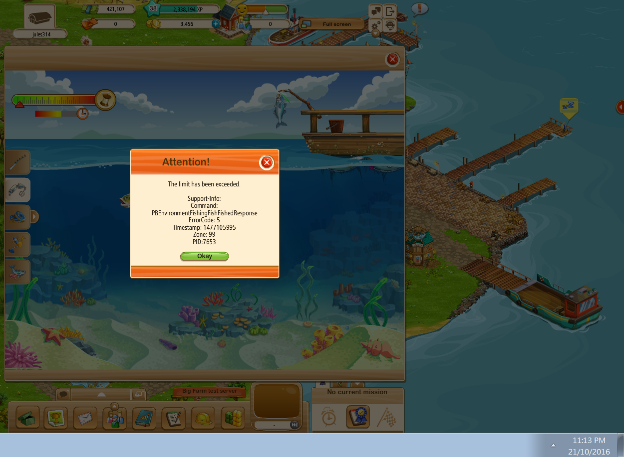 The problem is that when I catch a bluefish, I get an error.