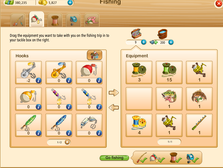 You need to drag the hook into the tackle box. On the left select/click on a hook you wish to use, yes you must stock of them to use them, then drag it to the right to equip it into your tackle box. From the screen shot you are showing above it tells me you have no hooks on hand or equipped.