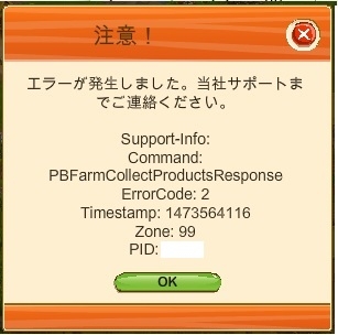 Another thing that worked for me just now is that the dog found a treasure which was added to my stock in the farm management. When I tried approximately 6 hours ago, the error message popped up and there was no treasure. I haven't tried harvesting anything else yet but will harvest wheat in a while to see if the problems have disappeared. love, Noddy.