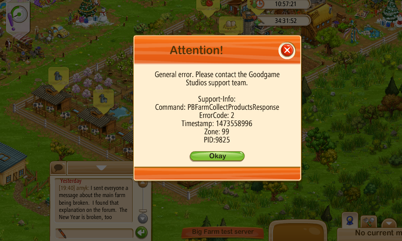 cifligimde ister ahirlar olsun istersede uretim binalari neye tiklayip toplamaya calisirsam bu yazi geliyo Genel Hata lutfen GoodGame Studios Destek Ekibine Bas vurun Support Info PBFarmCollectProductsResponse ErrorCode 2 Timestamp 1473558666 Zone 99 Pid 1914
