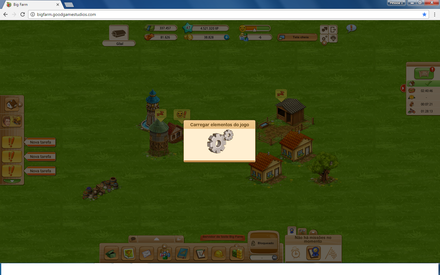 Spanish translate: sigo con el problema, no puedo abrir la granja principal en el servidor de prueba, dice "cargando" sin abrirse,