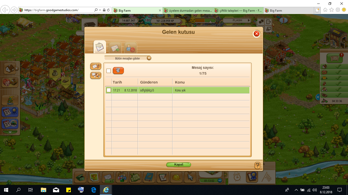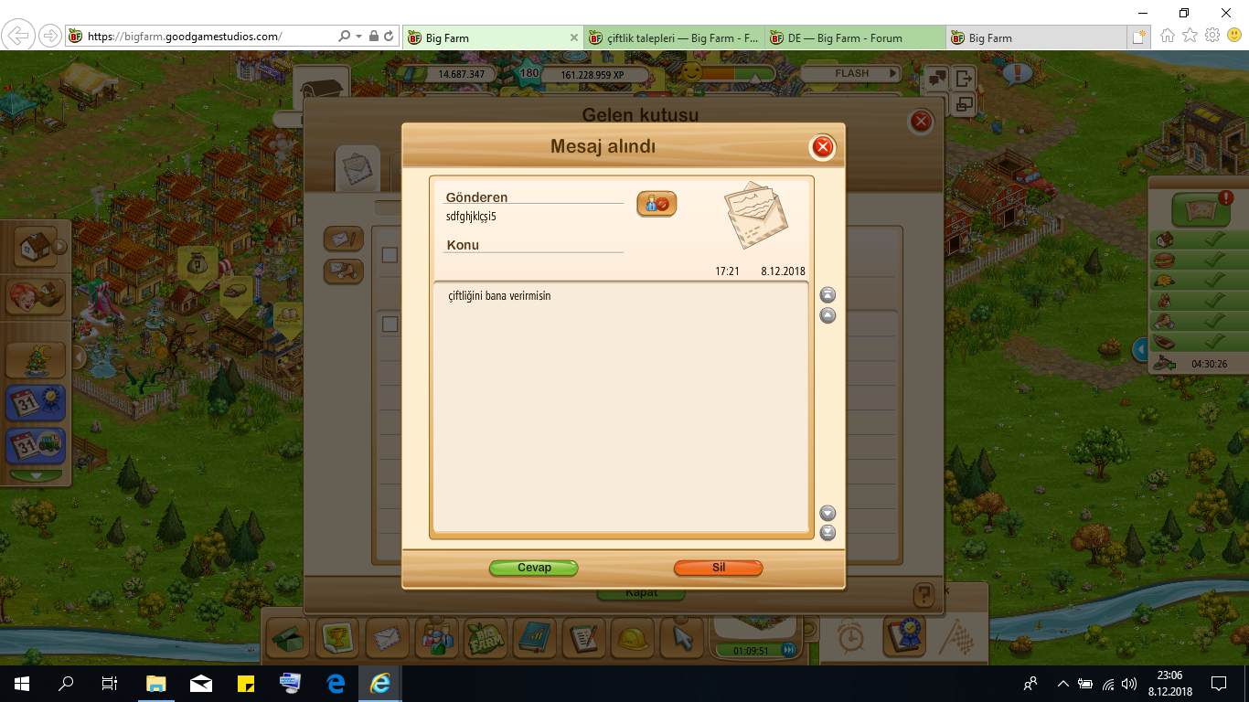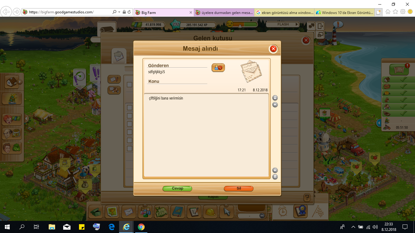 sdfghjklçşi5 isimli oyuncudan bıktım , usandım artık .Kendi çiftiğini geliştirmek yerine belli aralıklarla ben de dahil kooperatifteki arkadaşlardan "çiftliğini bana verir misin" şeklinde taleplerde bulunuyor. Rahatsız edici.... ![]()